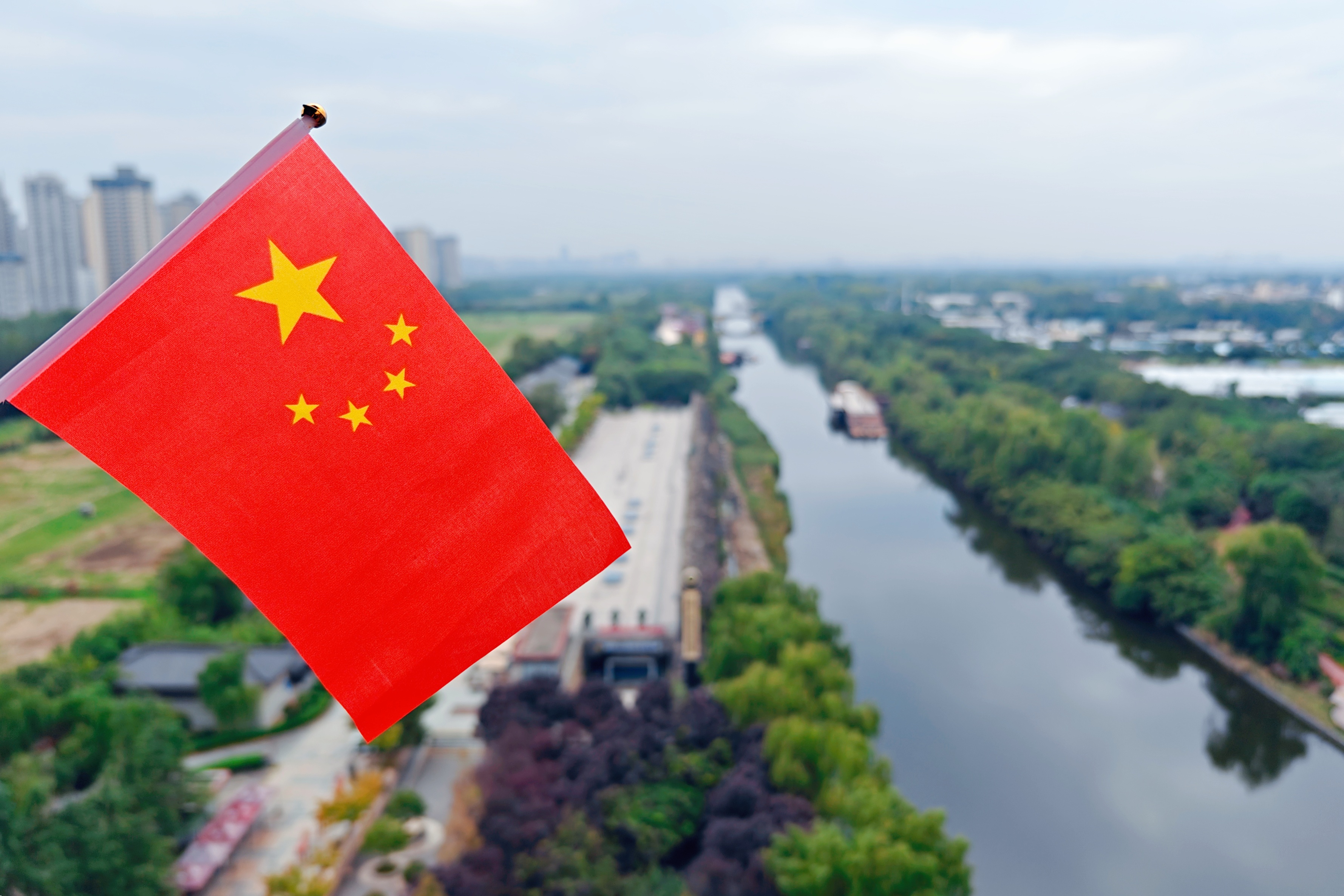 • 国庆第一天,汉城湖里的国旗与雨意,都是祝福的模样!