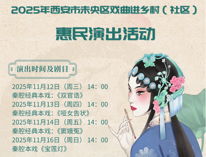 【演出预告】未央惠民演出好戏连台,汉城湖邀您赏秦腔经典!