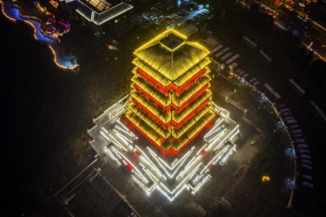 雪落长安,梦回大汉!汉城湖雪夜全景,大风阁光影美到窒息_